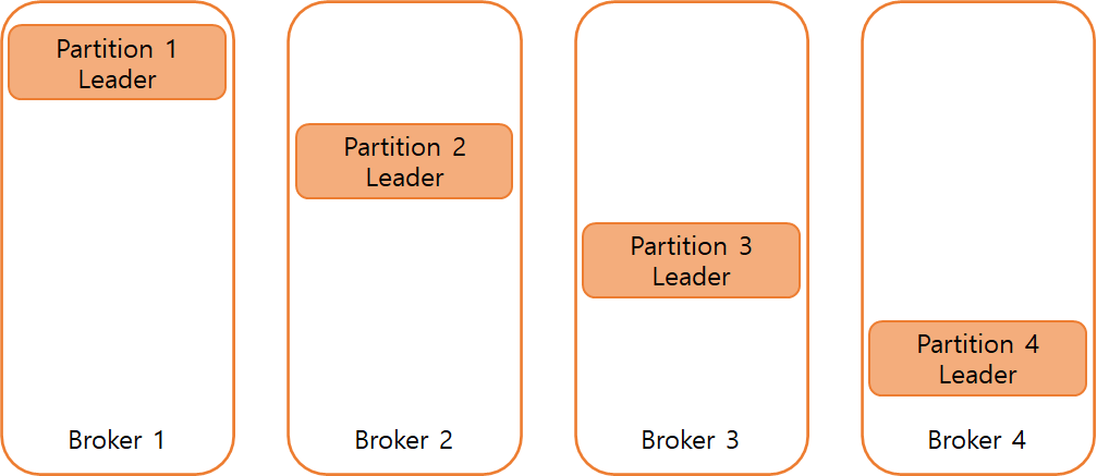 예를 들어 Replication factor가 1이라면 Partition은 1개의 leader replica와 0개의 follower replica로 이루어집니다.